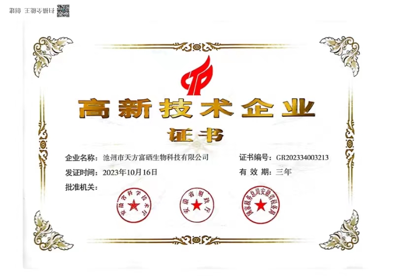 近日,池州市天方富硒生物科技有限公司正式通過高新技術(shù)企業(yè)認(rèn)定,榮獲由安徽省科學(xué)技術(shù)廳、安徽省財(cái)政廳、國家稅務(wù)總局、安徽...